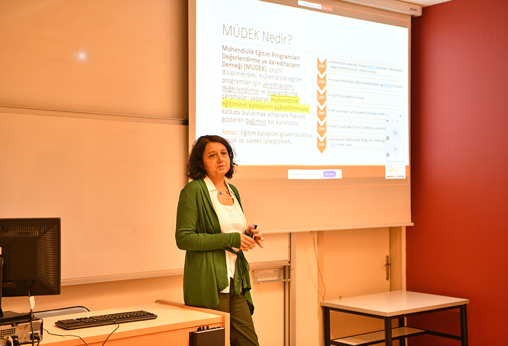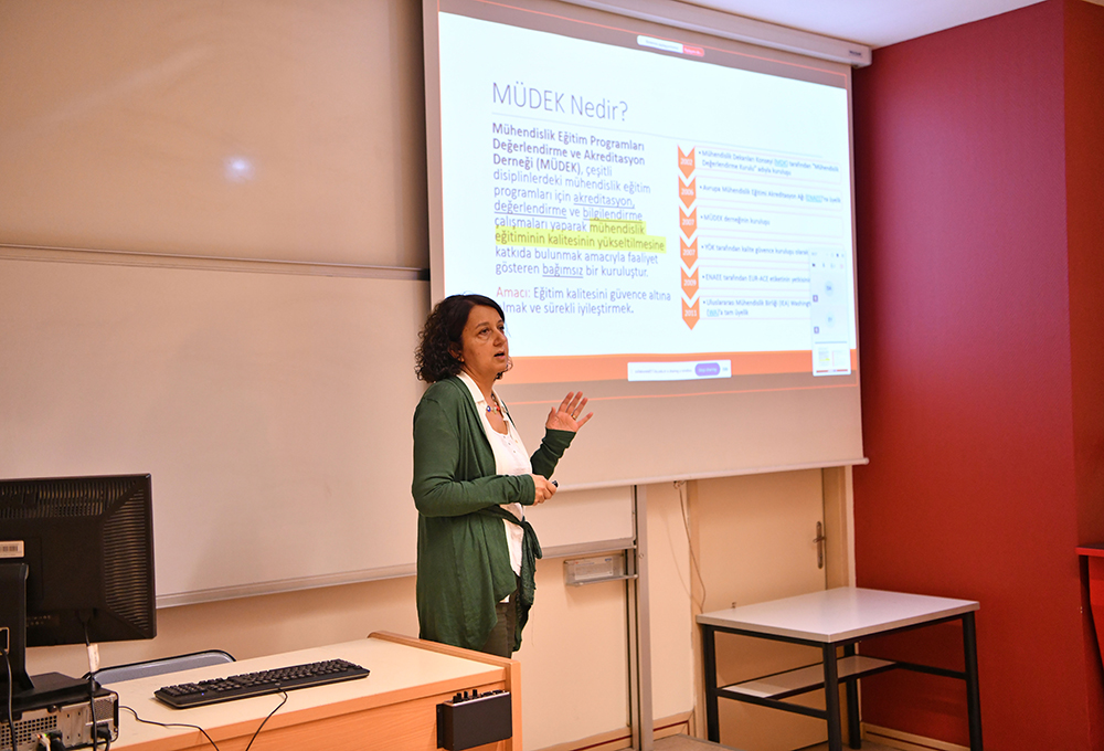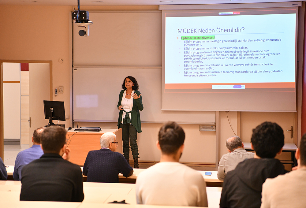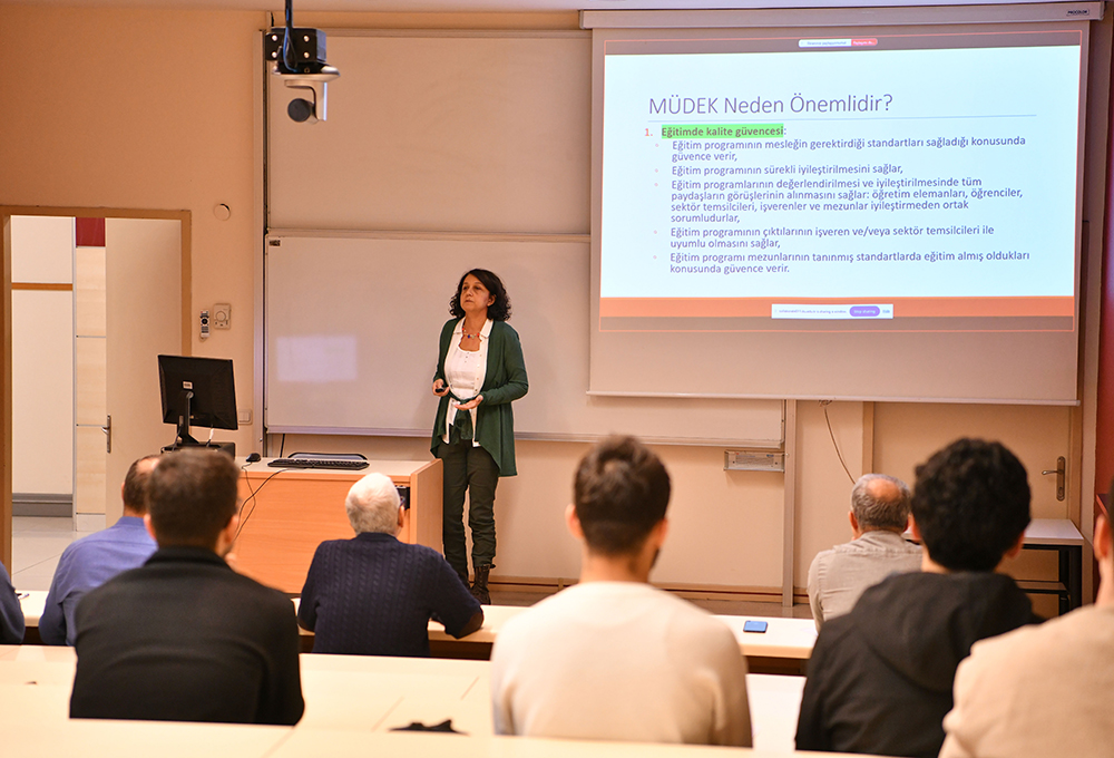Bakırköy yerleşkesi Ataköy binasındaki B1-6 numaralı amfide gerçekleştirilen seminerde akademik kadromuza ve öğrencilerimize; MÜDEK (Mühendislik Eğitim Programları Değerlendirme ve Akreditasyon Derneği) süreci, kalite standartları ve akreditasyon hazırlıkları hakkında detaylı bilgilendirme yapıldı.
